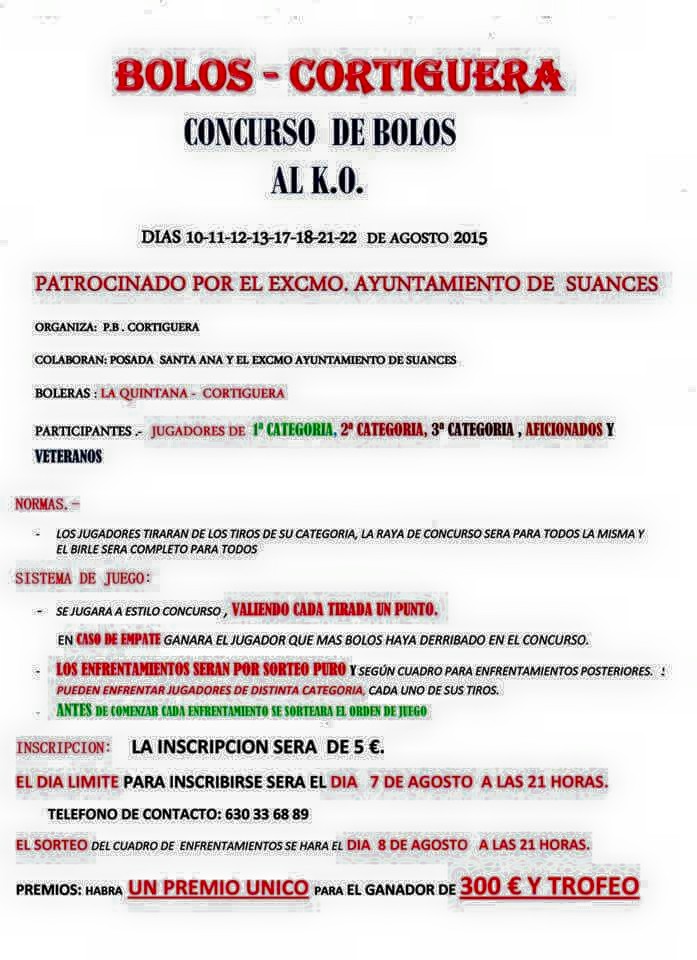 Concurso: VI TROFEO AYTO DE SUANCES Notas: Organizador P.B. Cortiguera Posada Sta Ana Para jugadores Aficionados (no es necesario estar federado). Inscripcion 5€ hasta el 9 de julio.