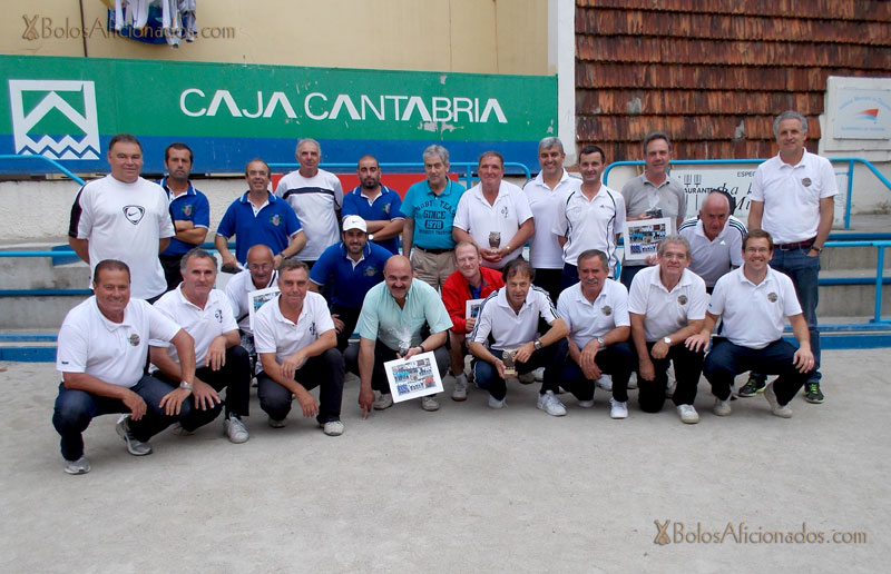 "Después de siete meses de competición, se celebró el pasado domingo día 2 de septiembre la gran final de la Copa de aficionados de Ribamontán al Mar 2012 en la preciosa bolera pública de Somo. Más de 150 personas presenciaron la jornada bolística, presentando la bolera un aspecto inmejorable, bolera perfectamente arreglada, precioso día festivo y un partido de gran interés. Se disputó la Gran Final entre los equipos POSADA PLAYA DE LANGRE y HOSTERÍA DE SOMO. El juego desplegado no pudo ser mejor y ante la igualdad en todos los chicos solo un perfecto emboque decantó el resultado final para los locales, dejando a los dominadores del año sin el preciado trofeo. Resultado: 1 - Por la Posada Playa de Langre: Timio, Gustavo, Colina, Dani, Chucho, Pepe. 4 - Por Hostería de Somo jugaron: Pin, Carlos, Mani, Santiago, Quino y Chucho. Nada mas finalizar la final, se entregaron los trofeos (preciosas cerámicas del Taller Municipal “Barros”, realizadas por Coco Aja) por medio del Presidente de la Junta Vecinal de Somo, Sr. Javier Bedia y por el concejal del Ayto. Ribamontán al Mar D. Luis Cagigal. Se recordó con un gran aplauso a nuestro querido amigo Mariano Calderón precursor tanto de la Liga de Bolos como la Liga de Mus y que siempre le tendremos en nuestro corazón. Se homenajeó a una persona que acompaña a su hijo por todas las boleras y que ahora se enfrenta con la disyuntiva de apoyar a este o a sus nietos, Doña Rosario. Se finalizó con la tradicional parrillada de chorizo y costilla para todos los asistentes." La XV Liga: 1º- Posada Playa de Langre, 2º- Junta Vecinal de Loredo, 3º- Hostería de Somo. |
