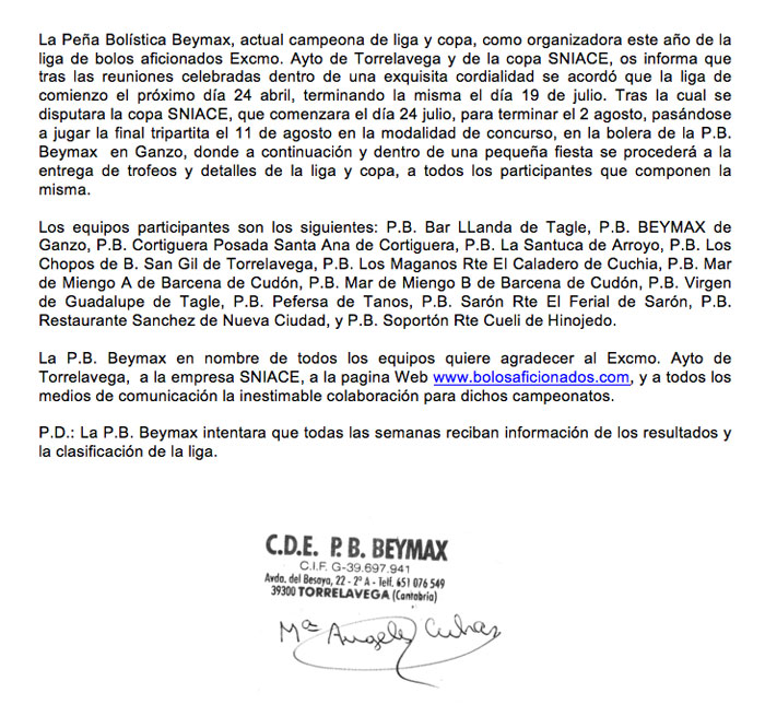 Nota de Prensa de P.B. Beymax para Torrelavega