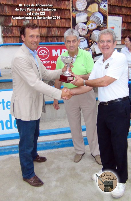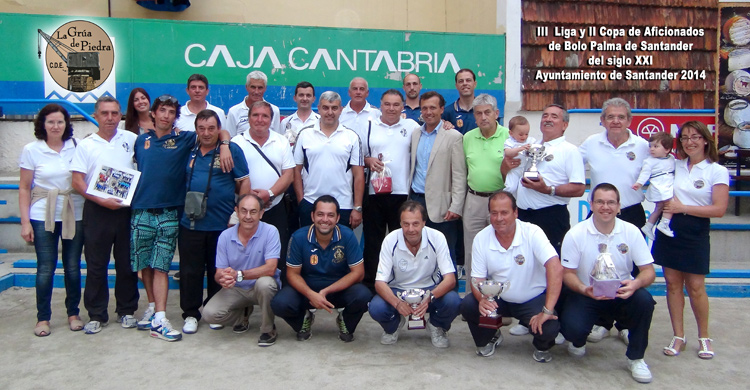 El jueves día 31 de julio se jugó la fase final de la II Copa de Aficionados de Bolo Palma de Santander Ayuntamiento de Santander, y se entregaron los premios de la Liga y de la Copa. El resultado de la Copa fue el mismo que el obtenido en la Liga. La P.B. La Grúa de Piedra se proclamó Campeona de la Copa y Subcampeón Los Viejos Boleros. De esta manera consiguen el "doblete" de Liga y Copa. Las semifinales se jugaron a medio concurso (2 tiradas a raya alta y 2 al medio). Restaurante El Carmen hizo 108 bolos, la Casa de los Bolos B hizo 109 bolos, los Viejos Boleros 118 bolos y La Grúa de Piedra con 124 bolos. La final se jugó a corro libre a 3 chicos hechos, con el resultado a favor de la Grúa de Piedra de 3-2. A la entrega de Trofeos asistió, en representación del Ayuntamiento de Santander, D. Juan Dominguez, Director del IMD del Ayto. de Santander; quien entregó los trofeos de la III Liga de Aficionados de Bolo Palma Ayto. de Santander y II Copa de Aficionados de Bolo Palma Ayto. de Santander, acompañado por el Presidente de la Casa de los Bolos, M. Coterillo. En la Liga han participado 7 peñas, quedando el siguiente resultado: 1ª PB La Grúa de Piedra (Mataleñas) con 17 puntos (Dif Chicos: +15), 2ª Los Viejos Boleros (Maoño) con 17 puntos (Dif Chicos: +13), 3ª PB La Casa de los Bolos B con 16 puntos, 4ª Restaurante El Carmen (Prezanes) con 13 puntos, 5ª El Badillo (Monte) con 10 puntos, 6ª New Mountain (Nueva Montaña) con 5 puntos y 7ª PB La Casa de los Bolos A con 4 puntos. Las peñas recibieron una cesta de productos, con quesucos de Potes de la Quesería Río Deva, patrocinador del evento, y una fotografía con todas las peñas, regalo valorado en 40€. La PB La Grúa de Piedra es la organizadora de la Liga y de la Copa, que en esta ocasión se ha celebrado en la Bolera de La Casa de los Bolos. Finalmente se ofreció un pequeño aperitivo de despedida de la competición.