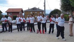 El XII Memorial Paco Cuesta se celebró el domingo día 23 de agosto en la bolera La Quintana de Cortiguera. Buena tarde de bolos y fiesta, con premios entregados por la familia de Francisco Cuesta y exhibición de deportes autóctonos y gran barbacoa final. En lo deportivo, jugaron un primer concurso las peñas: la P.B. La Grúa de Piedra (271 bolos) y P.B. Santillana Mesón El Pradón (296 bolos), P.B. Cortiguera Posada Santa Ana (300 bolos) y Bar Cuesta (286 bolos). En la final, la P.B. Santillana Mesón El Pradón ganó a 3 chicos hechos por 3-1 a P.B. Cortiguera Posada Santa Ana, y se proclama Campeona por primera vez. Fotos del XII Memorial Paco Cuesta en Cortiguera celebrado el día 23 de agosto |